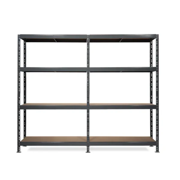 Metalna polica sa pločama od iverice 8mm debljine. Sam kostur je od čvrstog metala. Montiranje je bez šarafa i vrlo je jednostavno. Ima ukupno 8 nivoa i svaki nivo ima nosivost do 240kg.