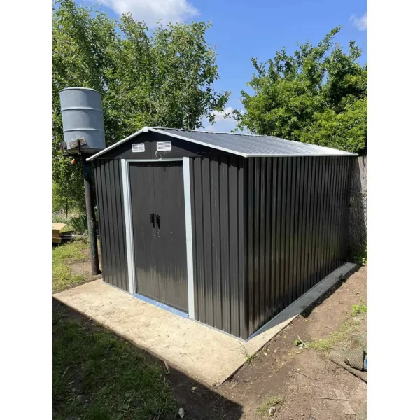 Dimenzije kucice su 3120 mm x 2570 mm x 2120 mm, što nudi dovoljno unutrašnjeg prostora za vaš baštenski alat. Vrata su klizna, što pruža rešenje za uštedu prostora. Konstrukcija je opremljena sa četiri ventilaciona otvora (4 otvora), što obezbeđuje pravilnu cirkulaciju vazduha i smanjuje rizik od kondenzacije.