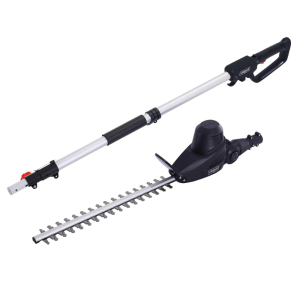 - Sa električnim teleskopskim trimerom za živu ogradu, visoko grmlje, živice i grmlje se mogu lako i praktično odrezati.